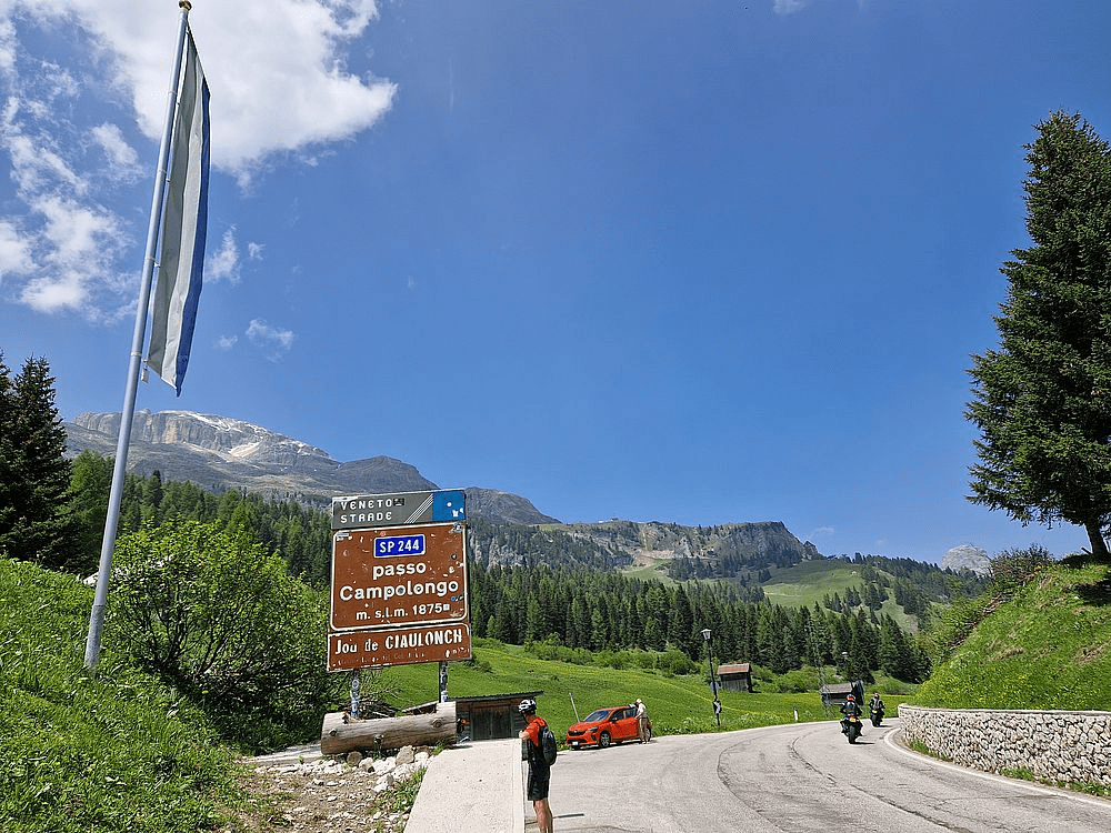 Schluss jetzt mit der Unkerei. Schließlich wollen wir heute den touristischen Höhepunkt einer jeden Dolomitenrunde mit dem Motorrad erkunden. Es geht weiter über Arabba zum Campolongo in nördliche Fahrtrichtung zum Grödnerjoch. Der Campolongo ist eigentlich mit dem Wort „unauffällig“ schon hinreichend beschrieben.