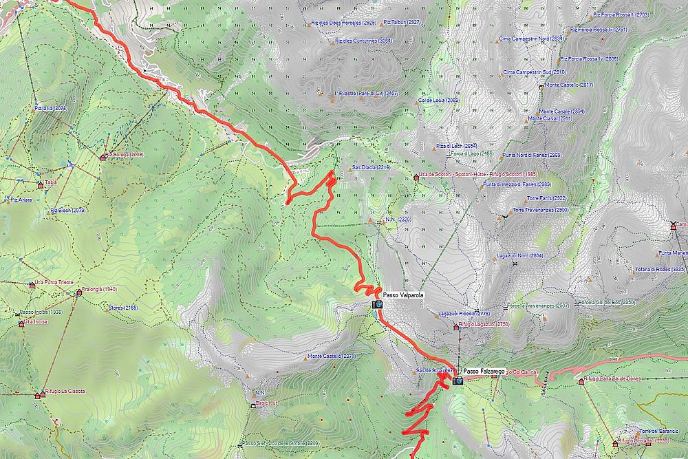 Wer bei unserer heutigen kleinen Runde die nötige Zeit mitbringt, der sollte mit der Seilbahn entweder hinauf zum Lagazuoi fahren oder die Seilbahn wenige Kilometer unterhalb des Passes hinauf zu den Cinque Torri nutzen.