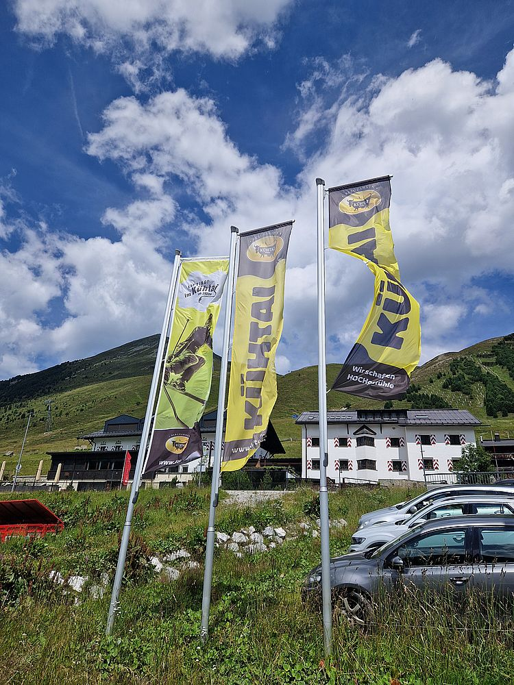 Landschaftlich schön gelegen ist der Weg auf den Sattel zwar keine Herausforderung aber entspannt zu fahren. Nomen est Omen. Je weiter es nach oben geht umso mehr sollten wir aufpassen auf die schweren Vierbeiner, die dem Kühtai den Namen geben.