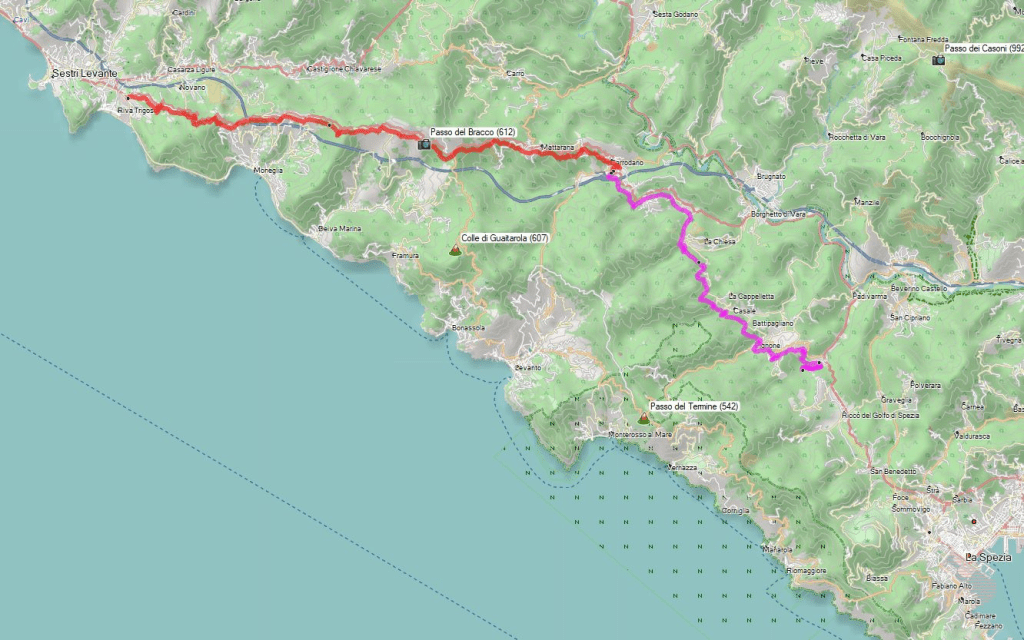 Aber wir fahren ja auch noch Motorrad und das machen wir von La Spezia aus auf der SS 1, der Via Aurelia, bis Pian di Barca. AUFGEPASST und die Abzweigung nach Pignone nicht verpassen. Die Cinque Terre sind mit ausgeschildert, aber dort wollen wir gar nicht hin.