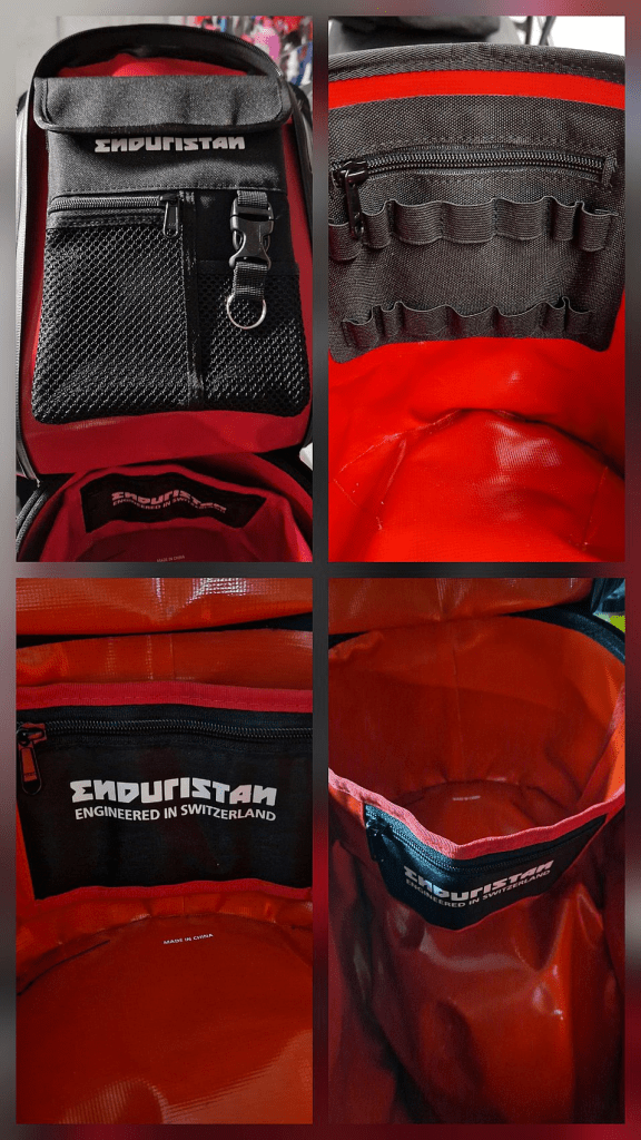 Auf der Internetseite und in einigen Foren wurde bei den Rezensionen von Nutzern auch das „rote Innenfutter“ des Sandstorm hervorgehoben. Dies insbesondere hinsichtlich der besseren Erkennbarkeit von „gesuchten Gegenständen“ im Tankrucksack. Ehrlich gesagt hat sich das für mich beim Lesen nicht so ganz erschlossen. Im Praxisbetrieb kann man dies aber faktisch bestätigen. Das rote Innenfutter des Enduristan ergibt tatsächlich einen besseren Kontrast und lässt DAS was man im Innenleben so alles eingepackt hat besser und schneller erkennen.